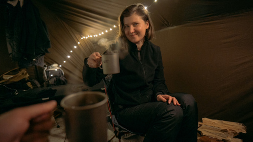 Её первый зимний поход. Ночуем в -17 С в сибирском лесу в палатке с печкой.