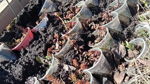 22. Как перезимовали стаканчики с черенками на грядке под хвойным опадом.21.03.25