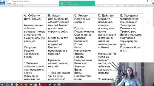 Правила заполнения дневника эмоций КПТ, расширенный вариант ABCDE (событие-мысли-эмоции-действия-ощущения). Часть1