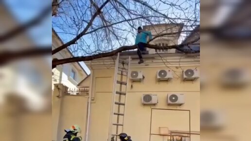 В Москве спасатели сняли с дерева курьера. Мужчина зашёл в здание, но дверь захлопнулась и выйти уже не смог, полез через забор и застрял