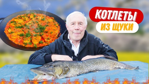 Котлеты из щуки - нажористые с соусом в сковороде на костре