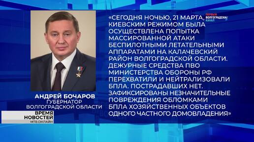 Бочаров: в Волгоградской области ночью 21 марта сбили украинские БПЛА