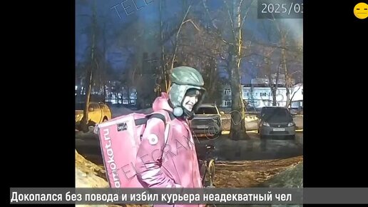 Бедолаге-курьеру сильно не повезло столкнуться в дверях с неадекватным пацаном...
