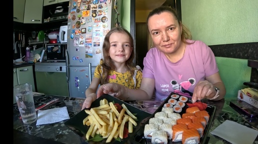 Роллы, картошка фри. Мукбанг с Лизой
