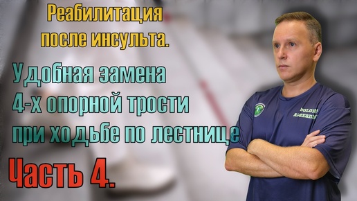 Реабилитация после инсульта. Альтернатива 4-х опорной трости для безопасной ходьбы по лестнице.