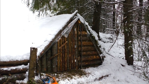 Строю ЗЕМЛЯНКУ в ТАЙГЕ возле ручья! Часть 4. Закрыл стену и обустраиваю внутри! №151