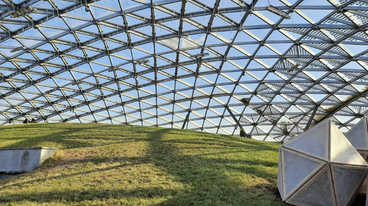 На вершине холма в оранжереи под стеклянным куполом в парке Зарядье