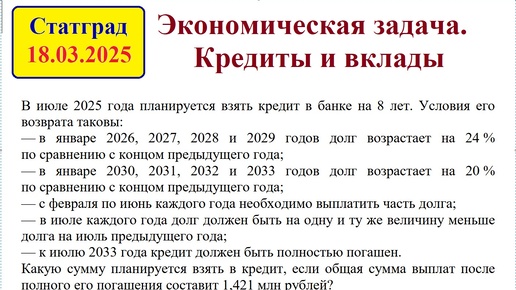Задачи на вклады и кредиты. Статград, 18.03.2025