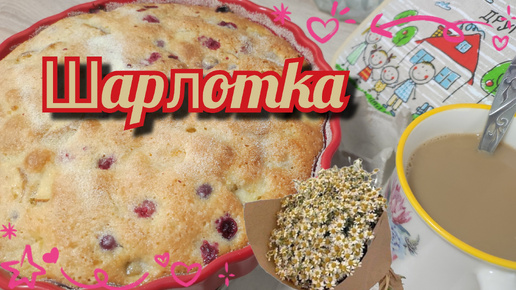 Шарлотка с яблоками, мандарином и клюквой. Быстрый пирог за 5 минут.
