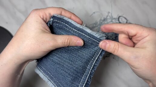Бахрома на джинсе не распустится даже после сотен стирок, делюсь лайфхаком, как шью и закрепляю на примере полезной идеи для кухни