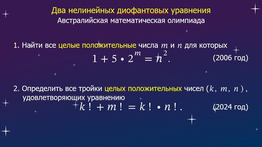 Два нелинейных диофантовых уравнения. Австралийская математическая олимпиада (2006, 2024).