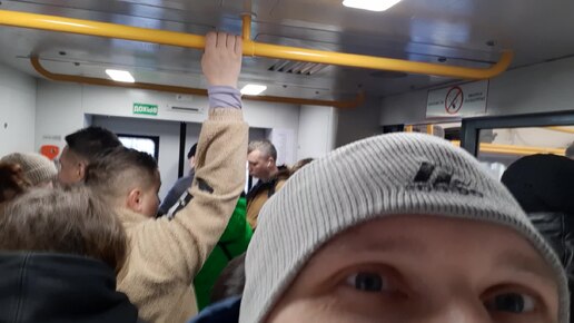 В полном вагоне МЦД в Москве