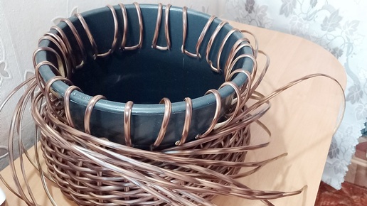 Продолжаем плести кашпо из ротанга "горшочек счастья" способом осьминожка и как сплести узор цепочка в этом кашпо