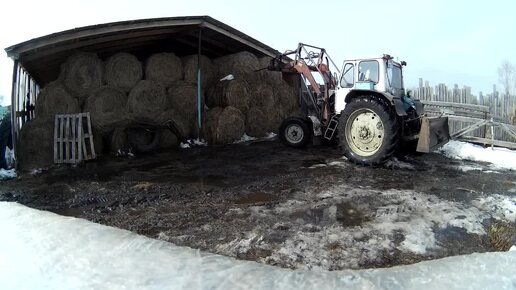 Весна наступает. Начал брать сено с сеновала, Силос возвращается, открыл дырявый рулон🤔. Осмотр поля под разработку🚜. Кот украл рыбу😼🐟.