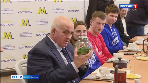 Молодые волонтёры подарили костромскому губернатору капсулу с рабочей перчаткой и песком