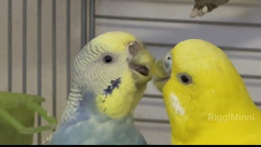 Жизнь волнистых попугаев. Перчик накормил Снежинку зеленью 😄