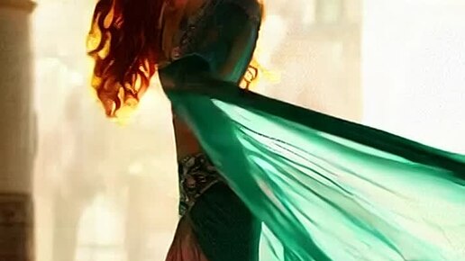 Нейросеть оживила картинку: девушка в зеленом платье