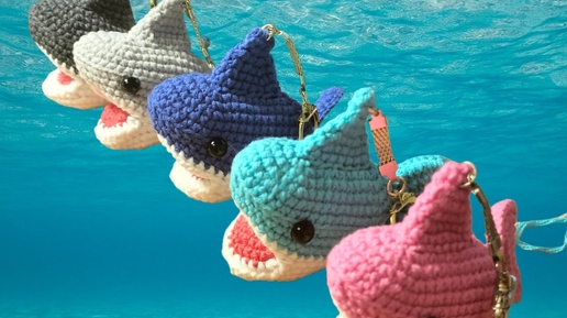 Вязание - это серьезно. Акула, используя голубой цвет.