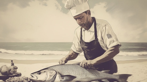 Приготовление свежевыловленного тунца. Шри- Ланка.