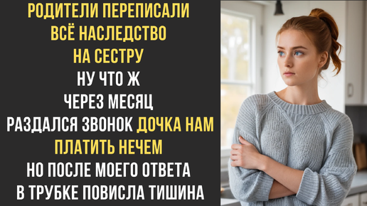 Родители переписали всё наследство на сестру Ну что ж Через месяц раздался звонок: Дочка, нам платить нечем