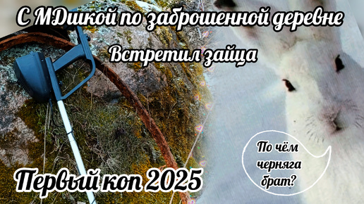 Первый коп 2025!С металлоискателем по заброшенной деревне Встретил любопытного зайца!