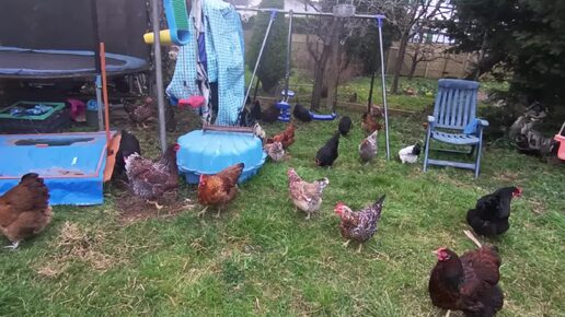 Субботний завтрак. Решила покрасить голову. У кур вечерний променад на травку.