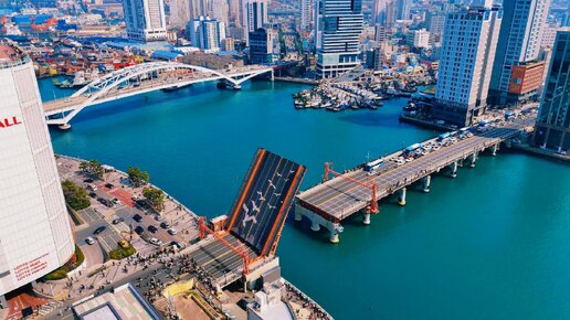 Как разводится мост Ёнгдо в Пусане, Южная Корея.