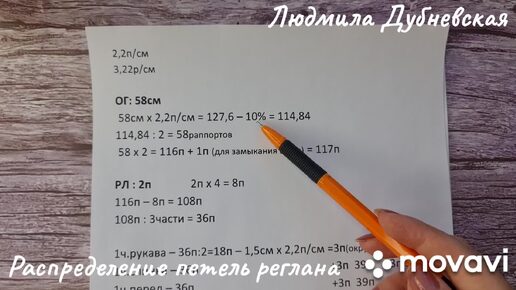 Простой расчет реглана сверху с анатомическим ростком.