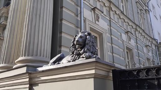 Обзор входа особняка "фон Рекк" со львами на Пятницкой улице в Москве