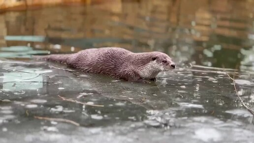 Выдра Финик из Ленинградского зоопарка радуется тёплым денькам в Петербурге