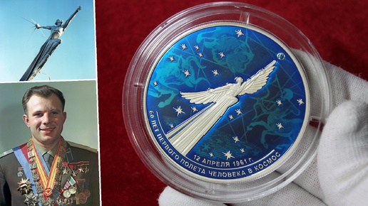 Большая серебряная монета России 2021 года 60 лет первого полета Юрия Гагарина в космос
