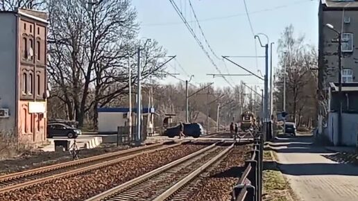 Спецтехника на железной дороге, следуют по удалению в одном направлении