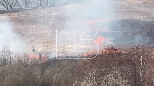 В Обнинске горит поле. В районе горнолыжки у Протвы огонь захватил большую территорию