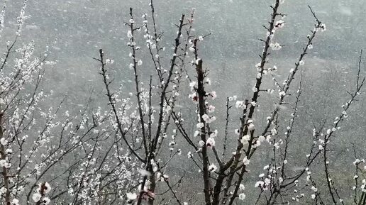Весна в горах Дагестана, абрикосы расцветают а погода метелица