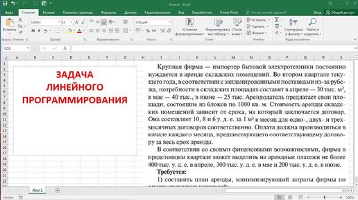 Задача линейного программирования на примере задачи плана аренды складских помещений