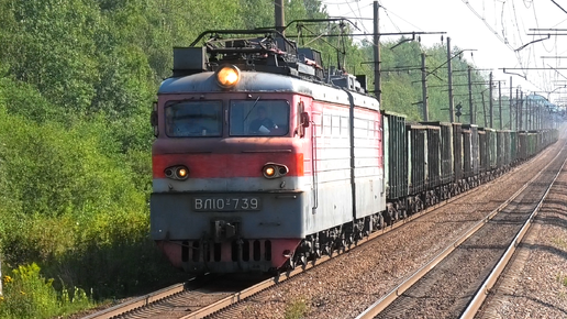 ВЛ10У-739 с грузовым поездом следует через о.п. Русановская