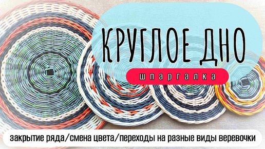 Круглое дно: закрытие ряда, смена цвета, переходы на разные виды верёвочки и обратно