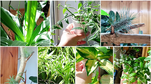 Обход комнатных растений. Все требуют внимания и заботы. Цветы пустились в рост.Огурец зацветает.