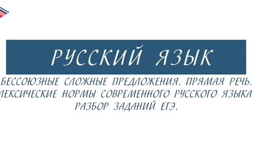 11 класс - Русский язык - Бессоюзные предложения. Прямая речь. Лексические нормы. Разбор заданий ЕГЭ