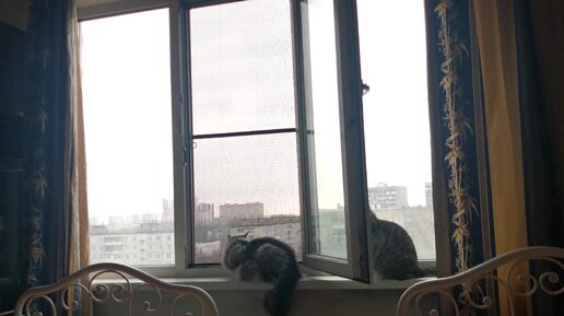 Котики66 - Лея, Буся и птицы за окном. Татьяна Пивкина.