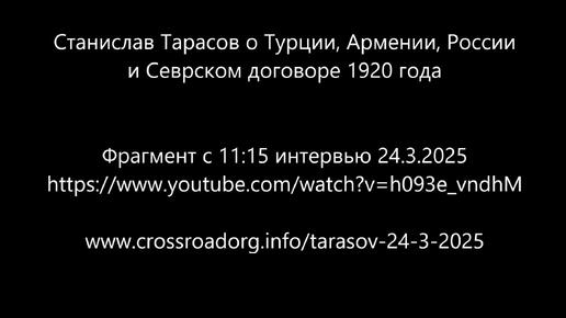 Станислав Тарасов 24 марта 2025 г. о Турции, Армении, России и Севрском договоре 1920 года