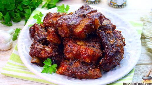 Сочные внутри и с хрустящей корочкой снаружи. Запечённые свиные рёбрышки