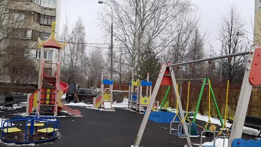 У карусели во дворе школьных лет в Митино в Москве