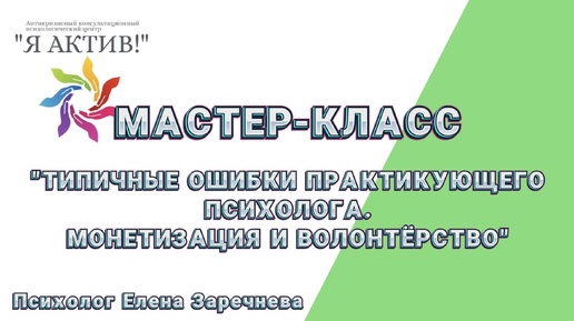 Мастер-класс «Типичные ошибки практикующего психолога. Монетизация и волонтёрство»