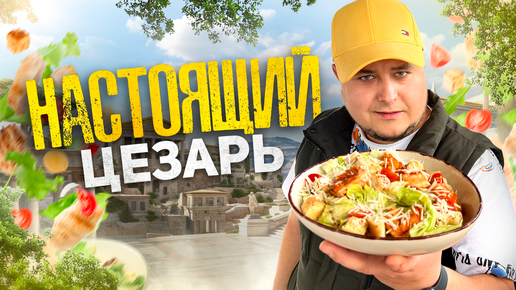 Салат ЦЕЗАРЬ с Правильным соусом и Креветками на Мангале.