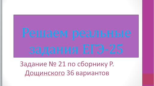 Решаем задания ЕГЭ-25. Задание № 21 по сборнику Р. Дощинского 36 вариантов.