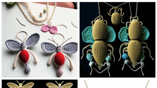 МИКС украшений на тему "НАСЕКОМЫЕ". ВЯЗАНИЕ от нейросети. Подборка №2.