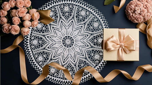 Салфетка "Принцесса" крючком - нарядная и нежная. Часть 1