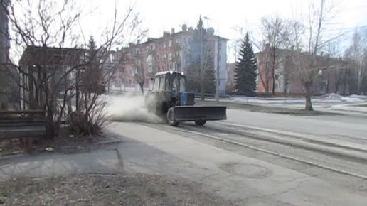 пыльный трактор. У вас тоже так "убирают" город?
