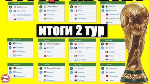 Отбор к ЧМ 2026 в Европе. Итоги 2 тура. Результаты, таблица, расписание.